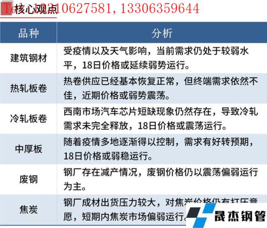 廢鋼:5月17日,主流無縫厚壁鋼管廠家廢鋼價格持穩。考慮到目前廢鋼加工基地庫存與無縫厚壁鋼管廠家庫存均處于低位,且廢鋼供應難有改善,對廢鋼價格形成一定支撐。當前疫情影響疊加天氣因素使得下游厚壁無縫鋼管需求難以釋放,由于成材庫存累庫,多數無縫厚壁鋼管廠家存在減產情況。鋼價或在區間震蕩運行,短期來看廢鋼價格仍以震蕩偏弱運行為主。
