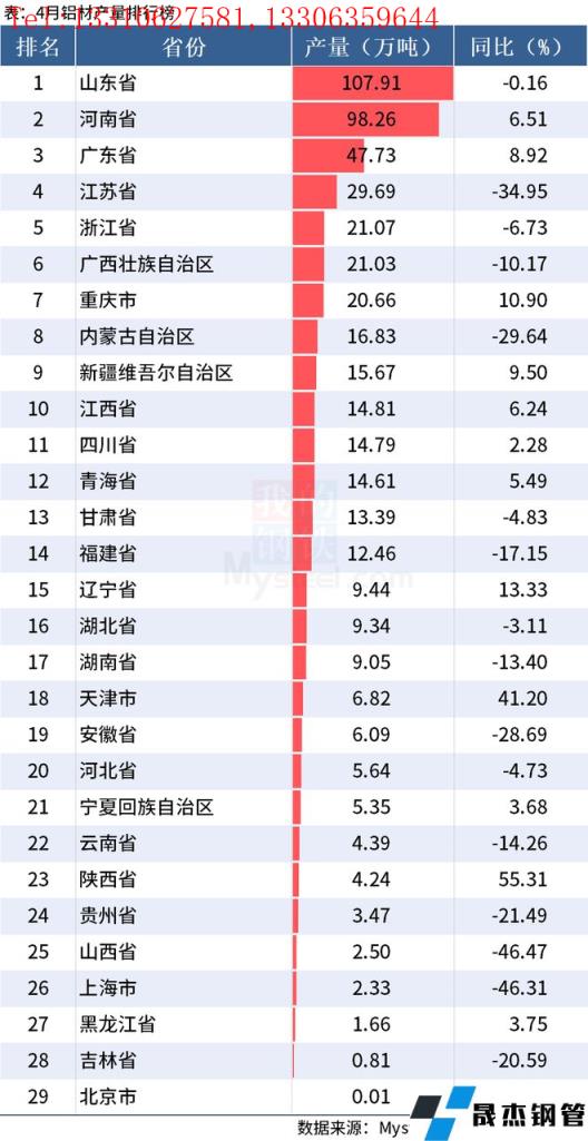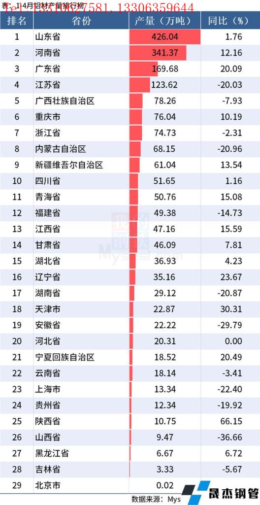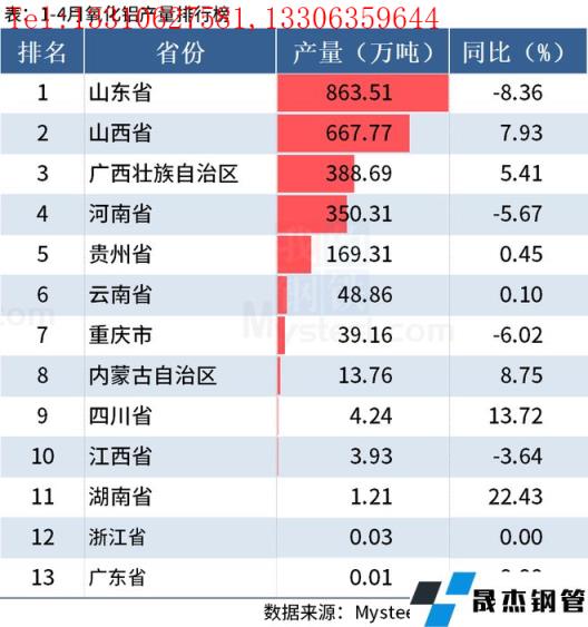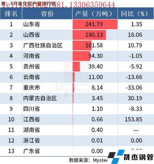 免責聲明:本網站(山東聊城晟杰無縫鋼管廠www.51pvc.cn)刊載的“統計局:前4月全國分省市鋁材、氧化鋁產量出爐”等均源于網絡,版權歸原作者所有,且僅代表原作者觀點,本文所載信息僅供參考。轉載僅為學習與交流之目的,如無意中侵犯您的合法權益,請及時聯系刪除。本網站刊登此篇文章并不意味著本站贊同其觀點或證實其內容的真實性,我們不對其科學性、嚴肅性等作任何形式的保證。如果侵犯了您的版權,請盡快聯系我們予以撤銷,謝謝合作!