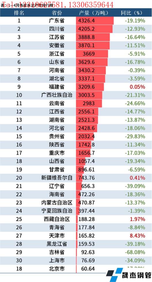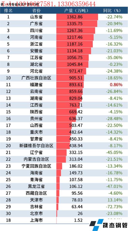 免責聲明:本網站(山東聊城晟杰無縫鋼管廠www.51pvc.cn)刊載的“統計局:前4月全國分省市水泥產量出爐,粵川蘇皖降超10%”等均源于網絡,版權歸原作者所有,且僅代表原作者觀點,本文所載信息僅供參考。轉載僅為學習與交流之目的,如無意中侵犯您的合法權益,請及時聯系刪除。本網站刊登此篇文章并不意味著本站贊同其觀點或證實其內容的真實性,我們不對其科學性、嚴肅性等作任何形式的保證。如果侵犯了您的版權,請盡快聯系我們予以撤銷,謝謝合作!