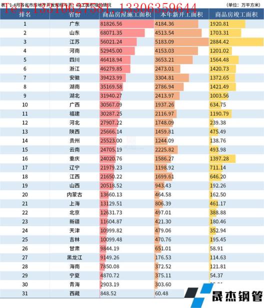 免責聲明:本網站(山東聊城晟杰無縫鋼管廠www.51pvc.cn)刊載的“統計局:前4月分省市房地產投資出爐,過半數同比下降”等均源于網絡,版權歸原作者所有,且僅代表原作者觀點,本文所載信息僅供參考。轉載僅為學習與交流之目的,如無意中侵犯您的合法權益,請及時聯系刪除。本網站刊登此篇文章并不意味著本站贊同其觀點或證實其內容的真實性,我們不對其科學性、嚴肅性等作任何形式的保證。如果侵犯了您的版權,請盡快聯系我們予以撤銷,謝謝合作!