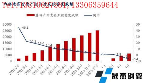 2022年以來,從上圖可以看出來,受住房不炒政策受影響,西北區域各省市房地產開發進度緩慢,房地產開發企業投資完成額以及新開工面積同比均是小幅下降。分省市來看,陜西作為西北經濟龍頭老大,房地產開發投資表現較好。2022年一季度,陜西省房地產開發企業完成投資674.03億元,同比增長5%,比1-2月提高1.8個百分點。而甘肅區域,一季度GDP同比增長5.3%,固定資產投資同比增長12.9%。其中,項目投資增長13.4%,房地產開發投資增長11.7%,商品房銷售面積下降10.7%。另外如分別是寧夏區域房地產開發投資增長增速為-1%。這在去年寧夏區域房地產開發投資增速為正數,今年面臨較大下行壓力。整體來說,由于受疫情以及資金問題,工程項目進度不如預期,厚壁無縫鋼管需求量同比減少,這也是前期西北區域建筑厚壁無縫鋼管消化緩慢以及庫存積壓原因。