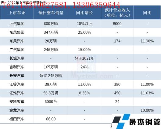 12家上市車企2022年經(jīng)營(yíng)計(jì)劃具體情況如下: