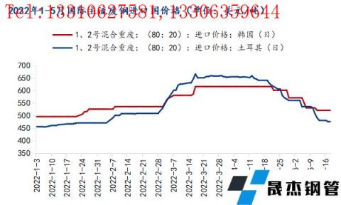 因成品銷售低迷,土耳其無縫厚壁鋼管廠家連續(xù)幾周遠離深海廢鋼采購,近期開始恢復(fù)采購,據(jù)調(diào)研,截止5月20日,土耳其HMS1:2(80:20)廢鋼到岸價在475美元/噸左右,距離3月份的高點大幅下降190美元/噸,離年內(nèi)低點約21美元/噸。韓國也因海外廢鋼價格的大幅走低,連續(xù)4周未對日本廢鋼進行采購,截止5月20日,韓國HMS1:2(80:20)廢鋼到岸價在520美元/噸,距離3月份的高點跌95美元/噸,離年內(nèi)低點約21美元/噸。截止目前,國際主流廢鋼進口國廢鋼價格較年內(nèi)峰值大跌近百美元,多接近于年內(nèi)低點。