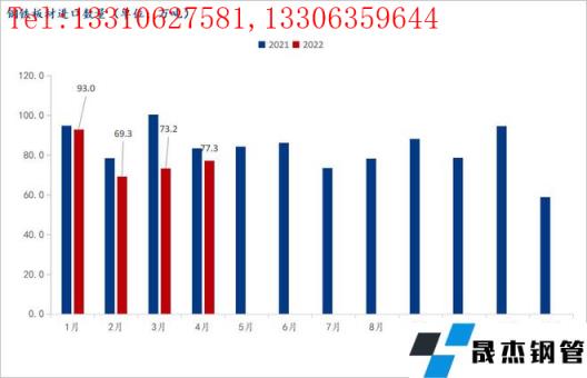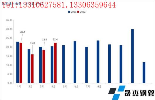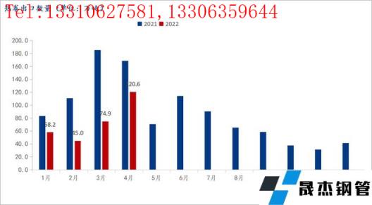 根據海關總署最新數據顯示,2022年4月,我國出口鋼鐵板材335.7萬噸,環比增2.68%,同比減少36.68%;進口77.3萬噸,環比小幅增加5.56%;同比減少7.42%。