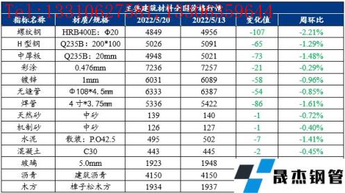 免責聲明:本網站(山東聊城晟杰無縫鋼管廠www.51pvc.cn)刊載的“建筑原材料周報(5.16-5.20)”等均源于網絡,版權歸原作者所有,且僅代表原作者觀點,本文所載信息僅供參考。轉載僅為學習與交流之目的,如無意中侵犯您的合法權益,請及時聯系刪除。本網站刊登此篇文章并不意味著本站贊同其觀點或證實其內容的真實性,我們不對其科學性、嚴肅性等作任何形式的保證。如果侵犯了您的版權,請盡快聯系我們予以撤銷,謝謝合作!
