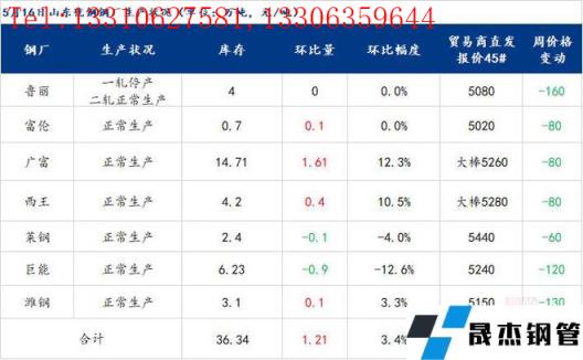 山東優(yōu)特?zé)o縫厚壁鋼管廠家?guī)齑?4.95萬(wàn)噸,環(huán)比下降1.39萬(wàn)噸,降幅3.82%,同比增加14.04萬(wàn)噸,增幅67.14%。生產(chǎn)方面:魯麗一軋停產(chǎn),二軋正常生產(chǎn);臨沂江泉停產(chǎn)。
