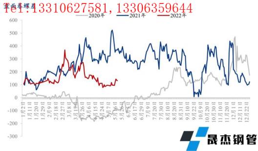 我們知道,2210合約螺紋鋼由之前的過磅交割改為理計(jì)交割,而10合約熱卷交割仍為過磅。這樣當(dāng)前盤面卷螺差折算成螺紋過磅的話,實(shí)際已經(jīng)是負(fù)值。為何盤面卷螺差會(huì)持續(xù)低位。最主要的原因是疫情對(duì)板材需求的影響大于建筑厚壁無縫鋼管,家電、汽車等制造業(yè)和物流修復(fù)都需要一個(gè)相對(duì)長的時(shí)間,而對(duì)比建筑業(yè)產(chǎn)銷,從上游無縫厚壁鋼管廠家到下游工地可以最快的垂直到達(dá),快速實(shí)現(xiàn)。在經(jīng)濟(jì)下行周期,制造業(yè)表現(xiàn)低迷,為穩(wěn)增長建筑業(yè)表現(xiàn)會(huì)相對(duì)好些,此時(shí)螺紋相對(duì)熱卷稍強(qiáng),盤面卷螺差持續(xù)縮小。