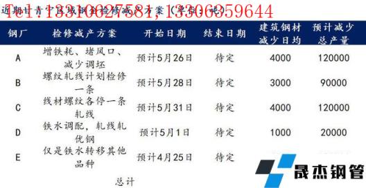 免責聲明:本網站(山東聊城晟杰無縫鋼管廠www.51pvc.cn)刊載的“近期甘青寧區域主要鋼企檢修、減產計劃”等均源于網絡,版權歸原作者所有,且僅代表原作者觀點,本文所載信息僅供參考。轉載僅為學習與交流之目的,如無意中侵犯您的合法權益,請及時聯系刪除。本網站刊登此篇文章并不意味著本站贊同其觀點或證實其內容的真實性,我們不對其科學性、嚴肅性等作任何形式的保證。如果侵犯了您的版權,請盡快聯系我們予以撤銷,謝謝合作!
