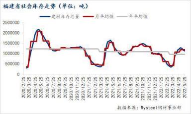 5月25日福建省建材總庫(kù)存合計(jì)103.48萬(wàn)噸,與上周相比增加2.28萬(wàn)噸,其中閩東46.25萬(wàn)噸、閩南48.55萬(wàn)噸、閩西北8.68萬(wàn)噸。