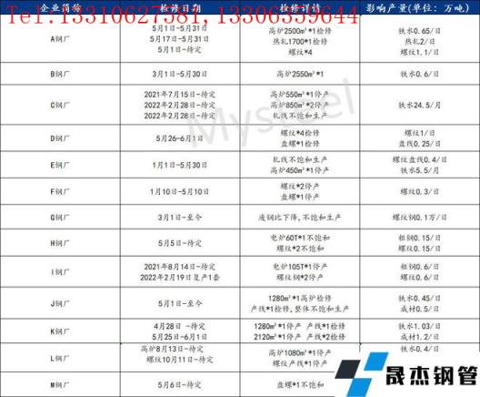 江蘇無縫厚壁鋼管廠家本周影響產量小幅減少,共計13家無縫厚壁鋼管廠家非正常生產,較上周檢修停產鋼企數量持平,目前鐵水影響產量較上周增加0.6萬噸 /日,粗鋼影響產量較上周減少0.3萬噸 /日,成材影響產量減少增加1.55萬噸 /日。5月22日,印度政府出臺針對鋼鐵原料及產品的進出口關稅調整政策。將焦煤、焦炭的進口稅率由2.5%、5%降至0關稅;將寬度在600毫米以上的熱軋、冷軋及涂鍍板卷的出口關稅由0%提高至15%,不同鐵品位和品種的鐵礦石出口關稅上調至45%-50%不等。經測算,該政策對鐵礦影響較大。同時,我們注意到電爐螺紋利潤-197元/噸,電爐無縫厚壁鋼管廠家持續虧損將觸發后期產量收縮,6月份多數無縫厚壁鋼管廠家將或面臨繼續減產的可能。具體情況及各主要品種日均影響產量(單位:萬噸)詳見下表: