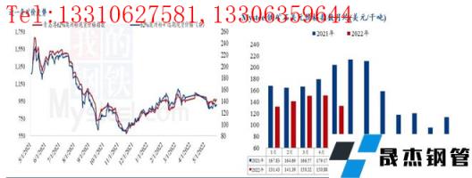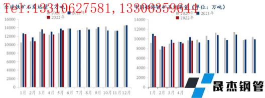 但隨著疫情影響的消退,按正常生產節奏上高爐鐵水產量月環比依舊出現增量,因此生產日耗增加,同時為保證廠內正常生產,在疫情常態化無縫厚壁鋼管廠家提貨需求也不斷增加,廠內庫存維持近兩月的相對高位。