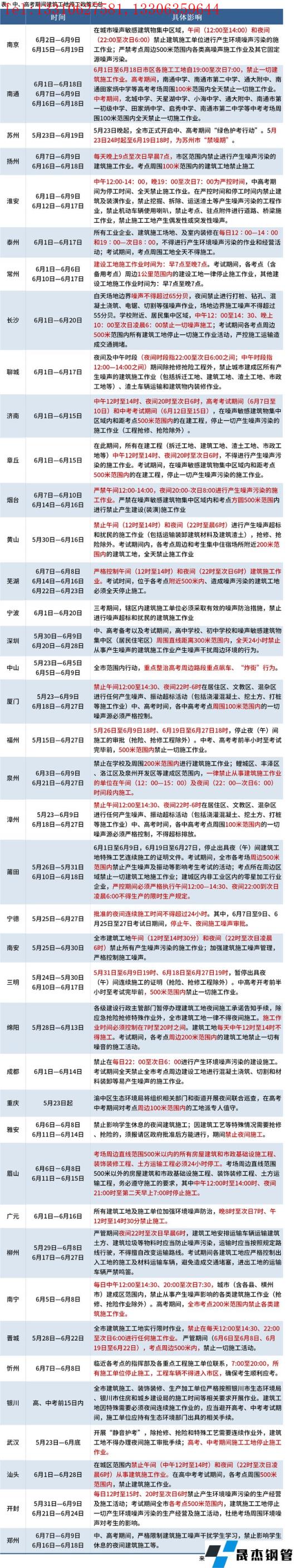 免責聲明:本網站(山東聊城晟杰無縫鋼管廠www.51pvc.cn)刊載的“中高考期間,40城建筑工地停工政策匯總”等均源于網絡,版權歸原作者所有,且僅代表原作者觀點,本文所載信息僅供參考。轉載僅為學習與交流之目的,如無意中侵犯您的合法權益,請及時聯系刪除。本網站刊登此篇文章并不意味著本站贊同其觀點或證實其內容的真實性,我們不對其科學性、嚴肅性等作任何形式的保證。如果侵犯了您的版權,請盡快聯系我們予以撤銷,謝謝合作!