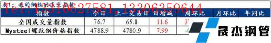 訊:全國建筑厚壁無縫鋼管成交量監測,成交量相對指數來看,全國76.7增11.6,北方59.3增6.3,華東99.9增18.2,南方63.1增7.9。今日螺紋鋼價格指數4788.9,較上一交易日增7.99。
