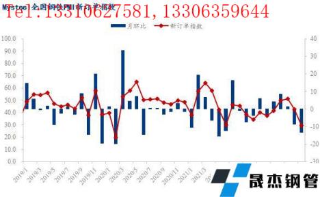 從相關指數來看,本月成品材出廠價指數大幅回落60.4個百分點至8.3,刷新年內低點,無縫厚壁鋼管廠家成品材庫存指數回落9.5個百分點至63.4,仍處榮枯線上方。同時成材價格下跌倒逼原料價格,本月原材料采購價指數大幅回落68.5個百分點至12.1,國內原材料采購量指數回落6.6個百分點至45.3,國外原材料采購量指數回落5.6個百分點至38.5。