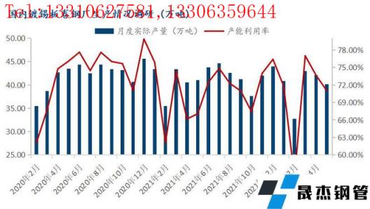 調(diào)研數(shù)據(jù)顯示:據(jù)監(jiān)測的26家鍍錫板生產(chǎn)企業(yè)中,共計(jì)49條產(chǎn)線,2022年5月份產(chǎn)能利用率71.02%,月環(huán)比下降2.66%,同比下降5.08%;5月鍍錫板實(shí)際產(chǎn)量40.14萬噸,月環(huán)比減少2萬噸,同比減少3.32萬噸;另外,對國內(nèi)重點(diǎn)鍍鉻生產(chǎn)企業(yè)調(diào)研數(shù)據(jù)顯示,5月份鍍鉻板產(chǎn)量共計(jì)7.32萬噸。