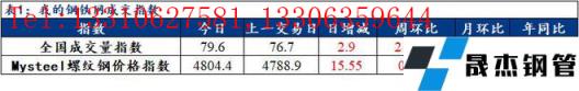 免責聲明:本網站(山東聊城晟杰無縫鋼管廠www.51pvc.cn)刊載的“數據:1日成交尚可 短期建材價格寬幅震蕩”等均源于網絡,版權歸原作者所有,且僅代表原作者觀點,本文所載信息僅供參考。轉載僅為學習與交流之目的,如無意中侵犯您的合法權益,請及時聯系刪除。本網站刊登此篇文章并不意味著本站贊同其觀點或證實其內容的真實性,我們不對其科學性、嚴肅性等作任何形式的保證。如果侵犯了您的版權,請盡快聯系我們予以撤銷,謝謝合作!