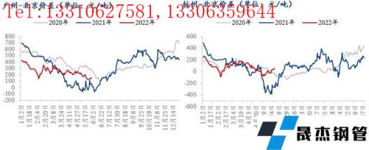 5月份全國各地市場價格不同程度下跌,華南跌幅居前,目前廣州-北京價差較上月有所收窄,僅在140元/噸左右,此價差處于偏低水平,不僅低于2020年同期水平,且低于兩地之間的運費,因此無縫厚壁鋼管廠家資源南下不如在京津冀當(dāng)?shù)叵胰A南區(qū)域的盤螺品種售價還低于華北,因此京津冀的無縫厚壁鋼管廠家除承鋼、樂鋼為維護(hù)客戶渠道分別有3萬噸的南下計劃,其他無縫厚壁鋼管廠家均無資源南下計劃。目前杭州-北京兩地之間價差較上月環(huán)比有所提高,不過兩地之間價差不足100元/噸,尚不足以吸引華北區(qū)域無縫厚壁鋼管廠家資源發(fā)往華東。當(dāng)前京津冀建材無縫厚壁鋼管廠家產(chǎn)量緩慢回升,加之西北、東北材的涌入,京津冀建材市場供應(yīng)量短期仍處于高位,需求方面疫情逐步得到有效控制,需求或有好轉(zhuǎn)可能,不過隨著高溫天氣的來臨,項目的施工進(jìn)度或有所放緩,因此需求增加量有限。隨著全國汛期的來臨,華東、華南等地需求也將有所萎縮,因此預(yù)計短期華南-華北、華東-華北市場價差或依然處于偏低水平。
