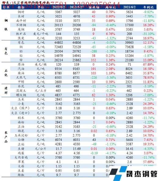 免責聲明:本網站(山東聊城晟杰無縫鋼管廠www.51pvc.cn)刊載的“周報:大宗工業原材料、能源及農產品價格周報(5.30-6.02)”等均源于網絡,版權歸原作者所有,且僅代表原作者觀點,本文所載信息僅供參考。轉載僅為學習與交流之目的,如無意中侵犯您的合法權益,請及時聯系刪除。本網站刊登此篇文章并不意味著本站贊同其觀點或證實其內容的真實性,我們不對其科學性、嚴肅性等作任何形式的保證。如果侵犯了您的版權,請盡快聯系我們予以撤銷,謝謝合作!