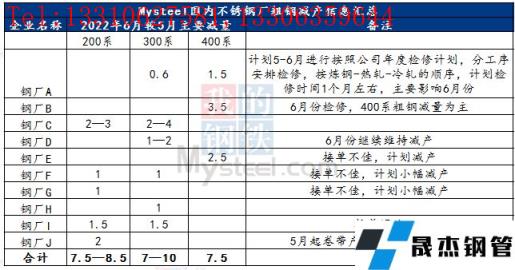 據不完全統計,截至6月7日,國內6家無縫厚壁鋼管廠家發布檢修計劃。其中,撫順新鋼鐵計劃6月中旬起對廠內1座580m3高爐進行30天左右的年修,預計鐵水日產量減少0.15萬噸左右、共影響鐵水產量4.5萬噸左右;同時1條線材軋線、1條全連軋軋線、1條棒材輪修,預計影響6月盤線產量5萬噸左右、螺紋鋼產量3萬噸左右。