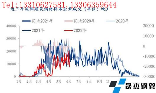 據統計,2022年6月7日沈陽建筑厚壁無縫鋼管樣本企業(下文統計數據均指沈陽市場建筑厚壁無縫鋼管樣本企業成交量)累計成交0.77萬噸,較上一交易日減少0.52萬噸、較節前最后一個工作日減少1.23萬噸,較2021年同期減少0.4萬噸、較2020年同期減少0.81萬噸,為近三年來5、6月份成交最低水平,下面簡要分析一下導致節后沈陽建筑厚壁無縫鋼管市場腰斬的原因。
