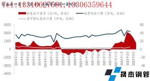 而在板帶箔出口方面,我們從下圖數(shù)據(jù)可以看到,在鋁卷出口利潤為負(fù)的時(shí)候,板帶箔仍維持較高水平的出口量。