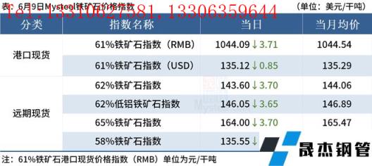 ◎6月9日,全國主港鐵礦石成交98.50萬噸,環比增22.4%;237家主流貿易商建材成交13.18萬噸,環比減19.5%。