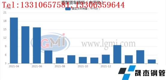 4月份國內重型貨車銷量為4.4萬輛,環比3月份減少3.3萬輛。同比21年同期減少約14.9萬輛。