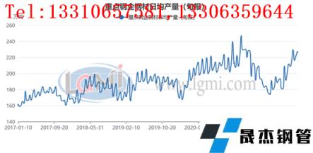 從重點(diǎn)大中型厚壁無(wú)縫鋼管企業(yè)日均產(chǎn)量來(lái)看,大中型厚壁無(wú)縫鋼管生產(chǎn)企業(yè)的產(chǎn)能釋放節(jié)奏較為穩(wěn)定,產(chǎn)量回升速度明顯放緩。據(jù)中國(guó)厚壁無(wú)縫鋼管工業(yè)協(xié)會(huì)統(tǒng)計(jì)數(shù)據(jù)顯示,5月份重點(diǎn)大中型厚壁無(wú)縫鋼管企業(yè)生鐵日產(chǎn)203.05萬(wàn)噸,環(huán)比上升2.19%;粗鋼日產(chǎn)230.3萬(wàn)噸,環(huán)比上升1.34%;無(wú)縫鋼管 厚壁鋼管日產(chǎn)221.23萬(wàn)噸,環(huán)比上升1.59%。