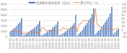 圖1 2016-2022年電源投資及增長(zhǎng)情況