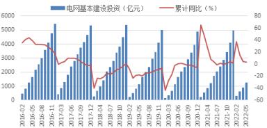 疫情等因素影響下,4-5月電網(wǎng)投資放緩,1-5月份,全國(guó)電網(wǎng)工程完成投資1263億元,同比增長(zhǎng)3.1%,增速較一季度明顯回落。