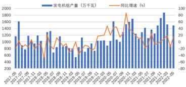 圖4 2017-2022年分月度發(fā)電機(jī)組產(chǎn)量及增長(zhǎng)情況