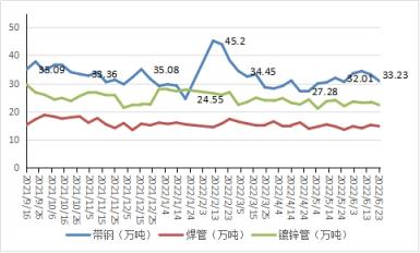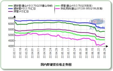 6月面臨美聯(lián)儲加息、國內(nèi)宏觀經(jīng)濟數(shù)據(jù)偏空雙重壓力,鋼市行情崩塌式探底,焊鍍管價格最高三天降幅達(dá)500元,需求傾向偏弱方向,但上游供應(yīng)壓力不減,市場信心修復(fù)需要時間,行情持續(xù)壓制在低位運行。