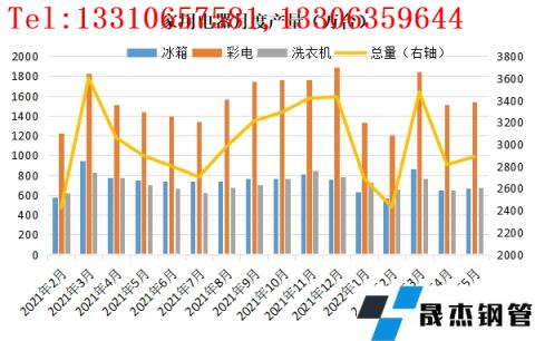 家電版塊產量表現也不甚樂觀。據國家統計局數據顯示,1-5月全國冰箱累計產量3401萬臺,同比下降8.1%;洗衣機累計產量3471.7萬臺,同比下降4.1%;彩電累計產量7441萬臺,同比增長4.5%。