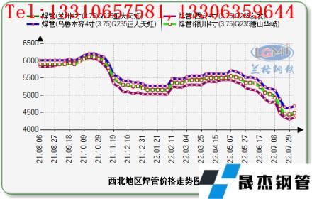 7月份(7.01-7.29),西北地區(qū)焊管鍍鋅管價(jià)格跌幅繼續(xù)擴(kuò)大。云商平臺(tái)監(jiān)測(cè)數(shù)據(jù)顯示,截至2022年7月29日,焊管方面:西安地區(qū)4寸(3.75mm)焊管價(jià)格為4840元(噸價(jià),下同)比上月同期降530元,蘭州地區(qū)4寸(3.75mm)焊管價(jià)格為4400-4420元比上月同期降370元,銀川地區(qū)4寸(3.75mm)焊管價(jià)格為4430-4450元比上月同期降580元,烏魯木齊地區(qū)4寸(3.75mm)焊管價(jià)格為4560-4640元比上月同期降550元。鍍鋅管方面:西安地區(qū)4寸(3.75mm)鍍鋅管價(jià)格為5060-5350元比上月同期降350-540元;蘭州地區(qū)4寸(3.75mm)鍍鋅管價(jià)格為5180-5240元比上月同期降610元;銀川地區(qū)4寸(3.75mm)焊管價(jià)格為5160-5220元比上月同期降580元;烏魯木齊地區(qū)4寸(3.75mm)焊管價(jià)格為5360-5440元比上月同期降560元。
