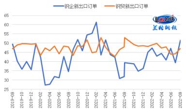 據(jù)中物聯(lián)厚壁無縫鋼管物流專業(yè)委員會數(shù)據(jù)顯示,2022年8月,厚壁無縫鋼管生產(chǎn)企業(yè)新出口訂單指數(shù)為51.6%,較上月明顯回升12.2個百分點。云商平臺統(tǒng)計發(fā)布的2022年8月份厚壁無縫鋼管流通業(yè)PMI數(shù)據(jù)顯示,8月份厚壁無縫鋼管貿(mào)易企業(yè)新出口訂單指數(shù)為47.1%,雖仍在收縮區(qū)間運行,但較上月回升了2.9個百分點。